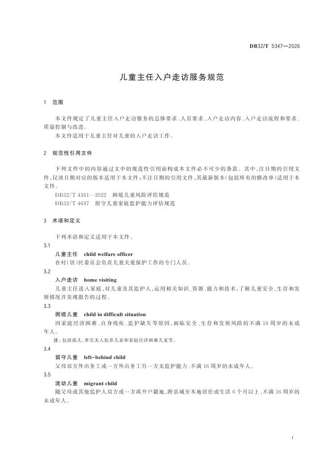 DB32/T 5347-2026 儿童主任入户走访服务规范