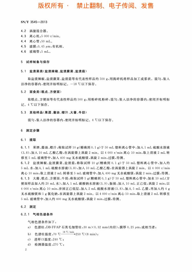 SN/T 3545-2013 出口食品中多种防腐剂的测定方法