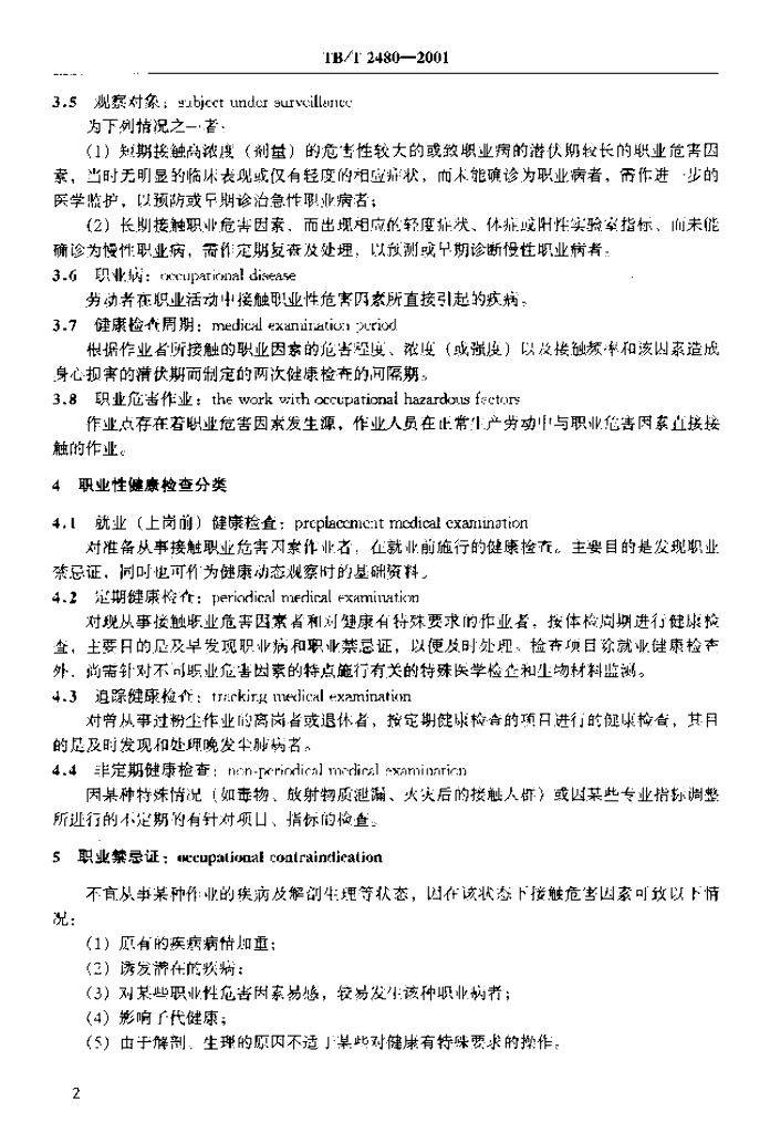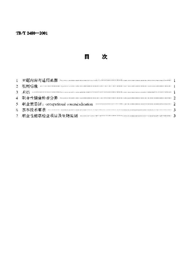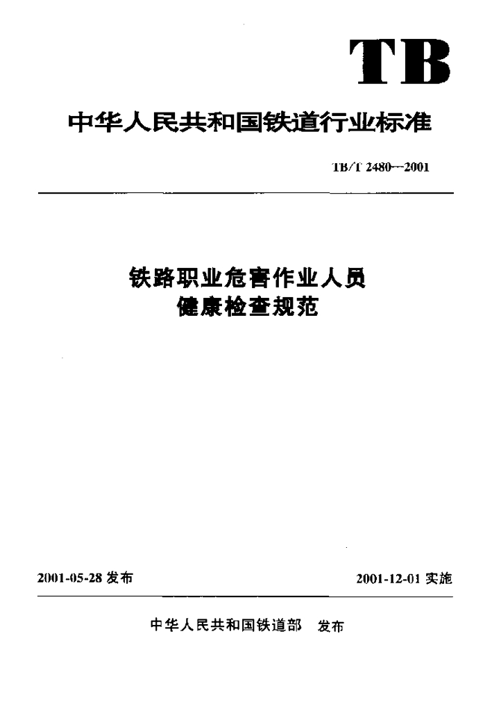 TB/T 2480-2001 铁路职业危害作业人员健康检查规范