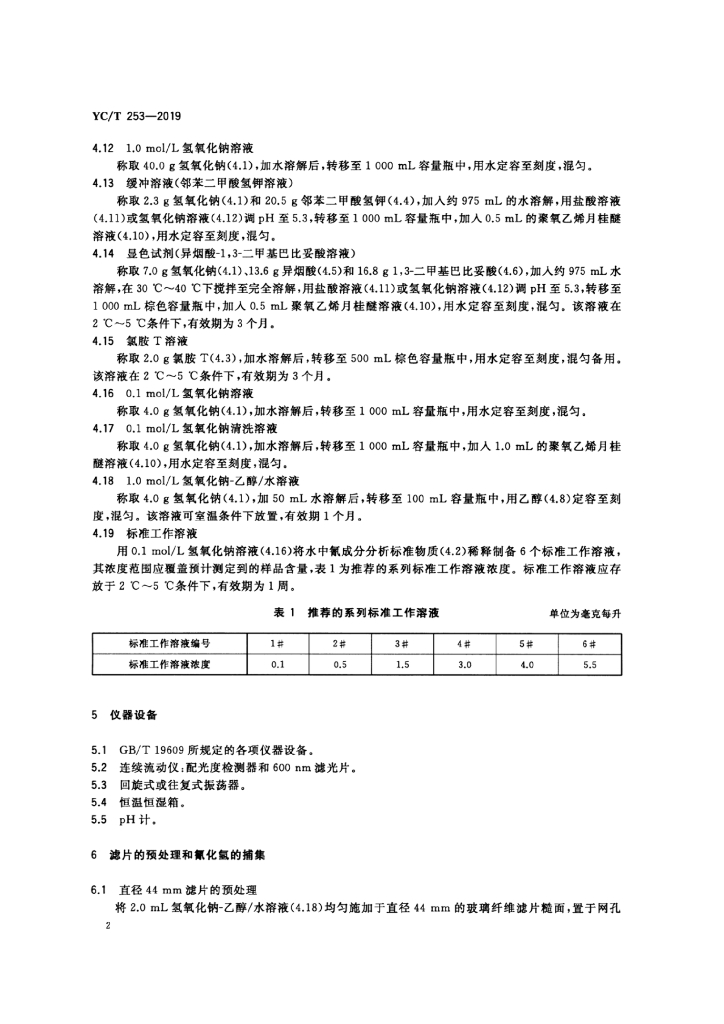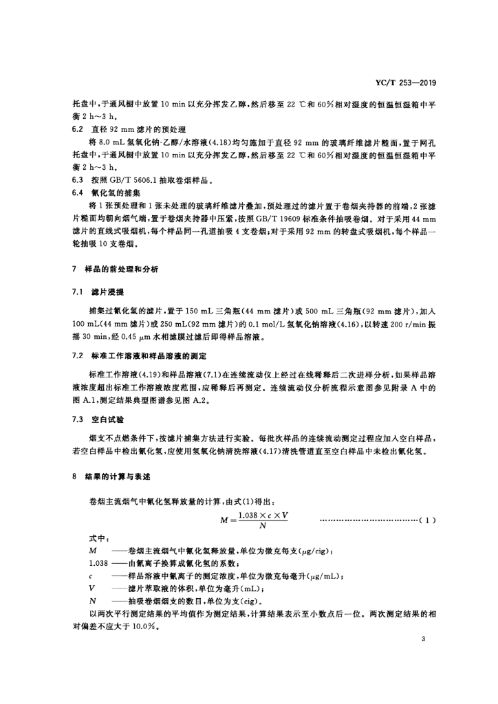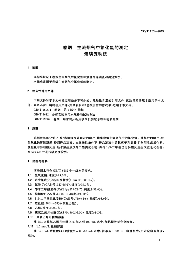 YC/T 253-2019 卷烟 主流烟气中氰化氢的测定 连续流动法