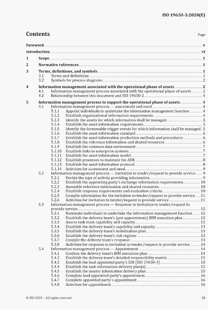 ISO 19650-3:2020(E) Organization and digitization of information about buildings and civil engineering works, including buildinginformation modelling (BIM) 一Information managementusing building information modelling-Part 3:Operational phase of the assets