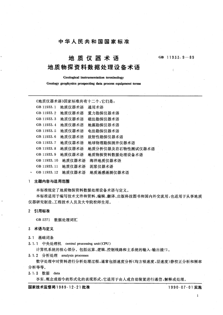DZ/T 0121.9-1994 地质仪器术语 地质物探资料数据处理设备术语