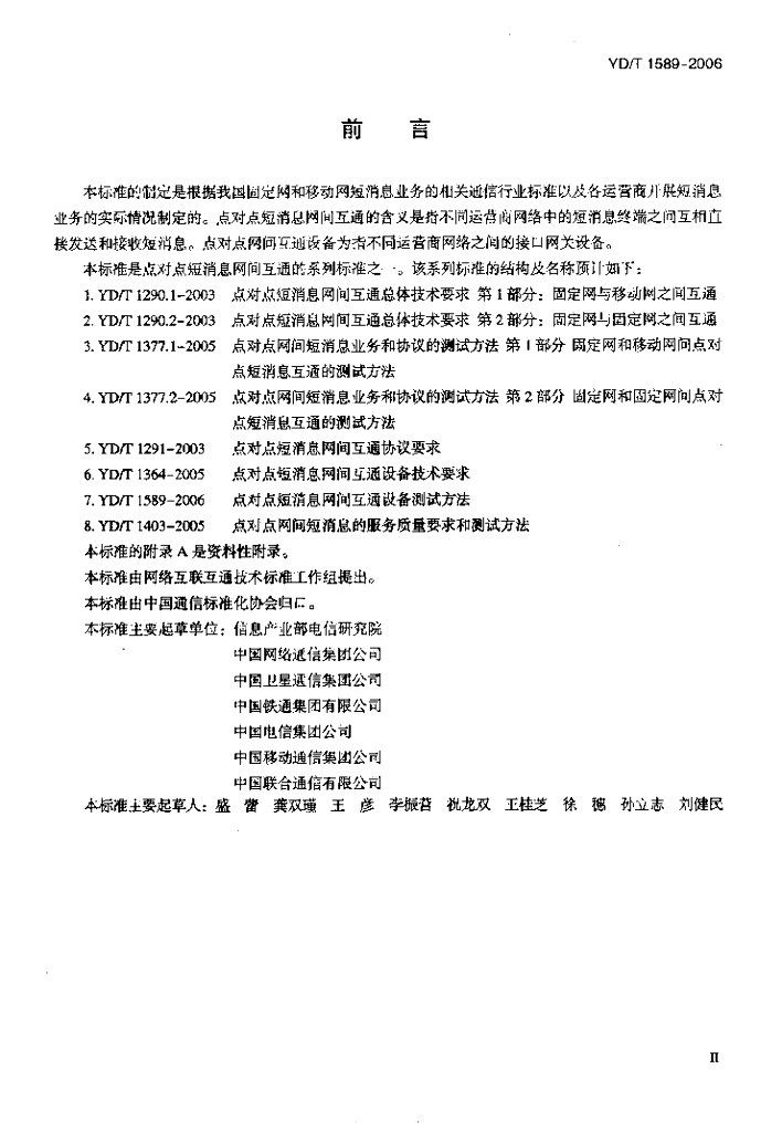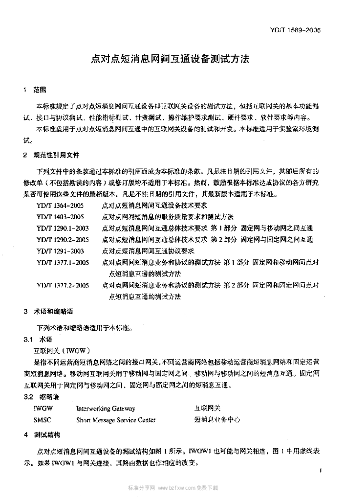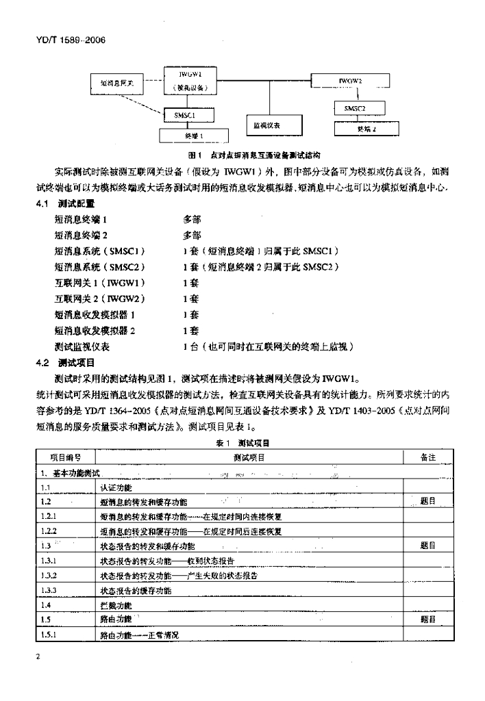 YD/T 1589-2006 点对点短消息网间互通设备测试方法