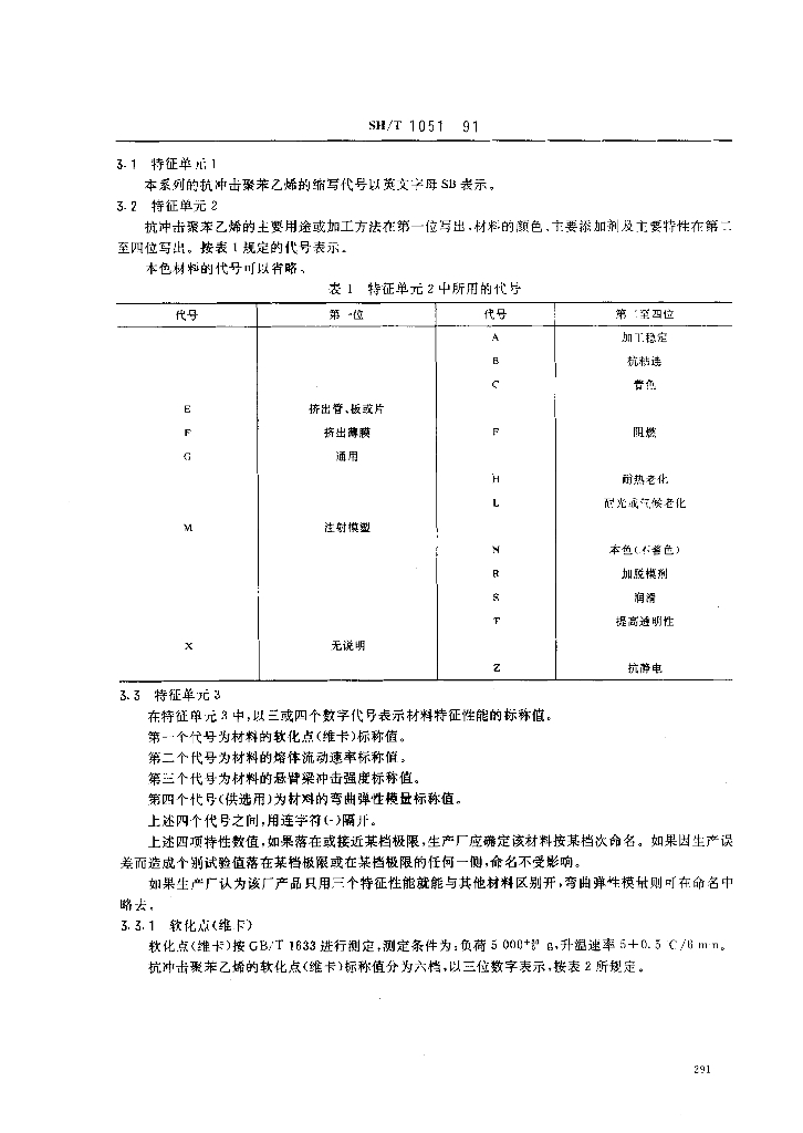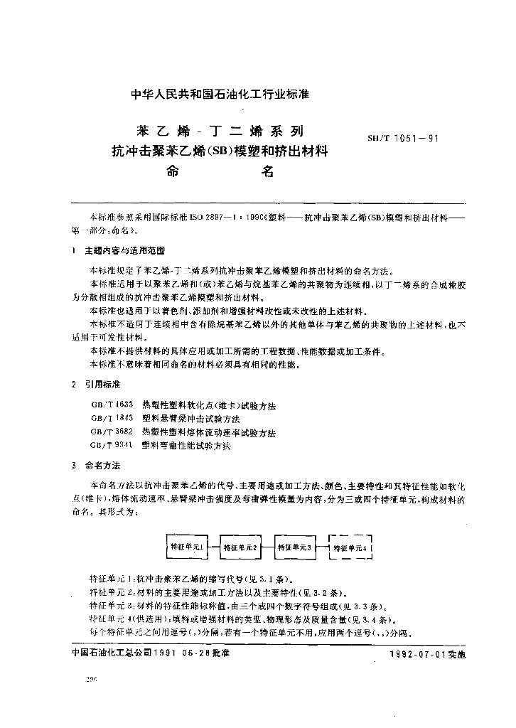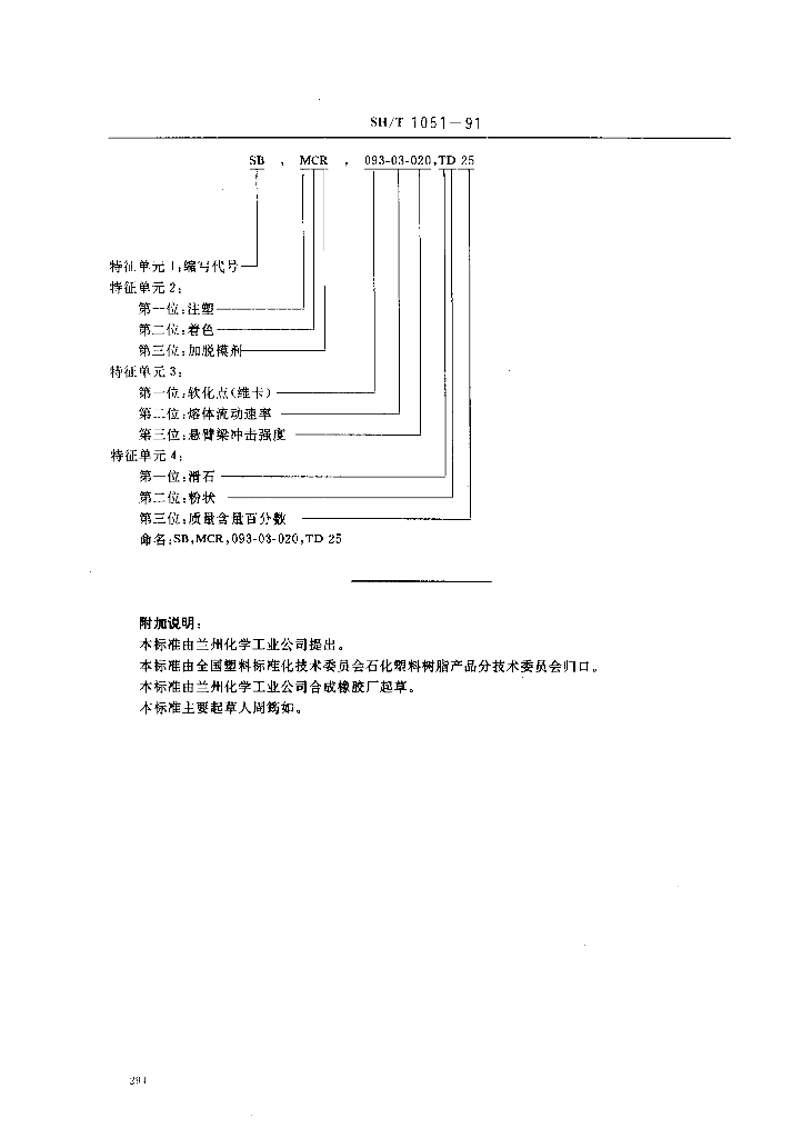SH/T 1051-1991 苯乙烯-丁二烯系列抗冲击聚苯乙烯(SB)模塑和挤出材料命名