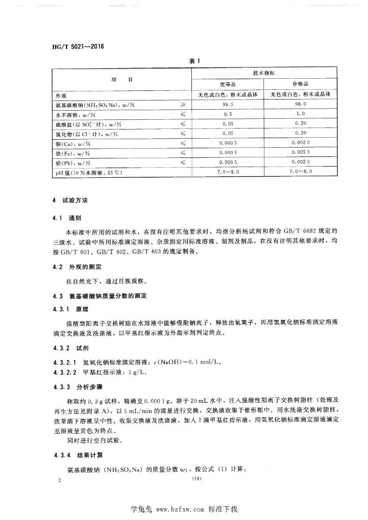 HG/T 5021-2016 工业氨基磺酸钠