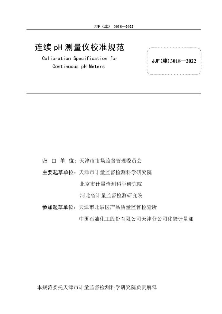 JJF(津)3018-2022 连续pH测量仪校准规范