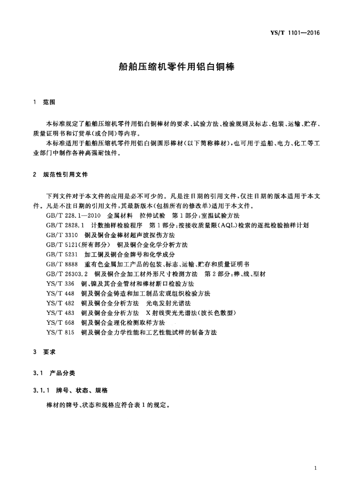 YS/T 1101-2016 船舶压缩机零件用铝白铜棒