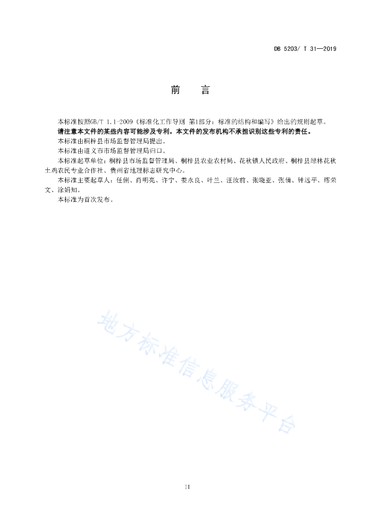 DB5203/T 31-2019 地理标志产品 花秋土鸡