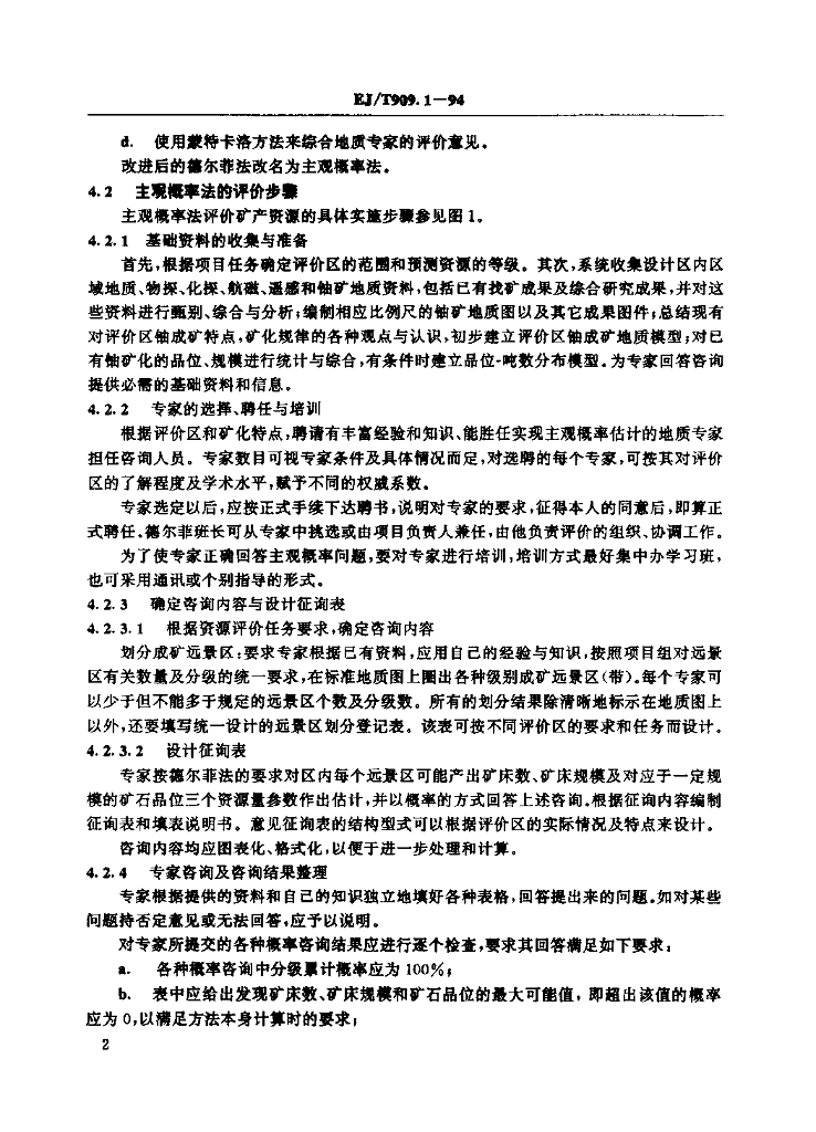 EJ/T 909.1-1994 铀矿资源评价方法 主观概率法