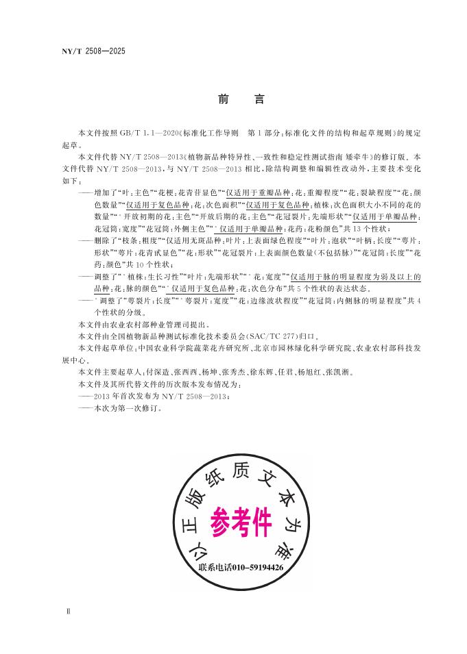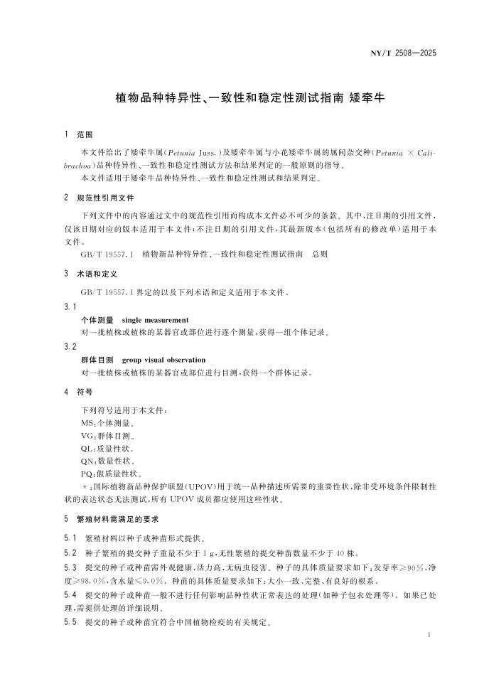 NY/T 2508-2025 植物品种特异性、一致性和稳定性测试指南 矮牵牛