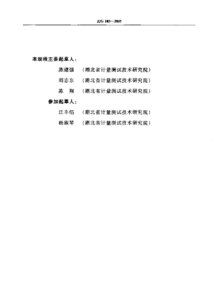 陈建强(湖北省计量测试技术研究院)、阎志京(湖北省计量测试技术研究院)、陈翔(湖北省计量测试技术研究院)、汪丰焰(湖北省计量测试技术研究院)、杨淑琴(湖北省计量测试技术研究院)