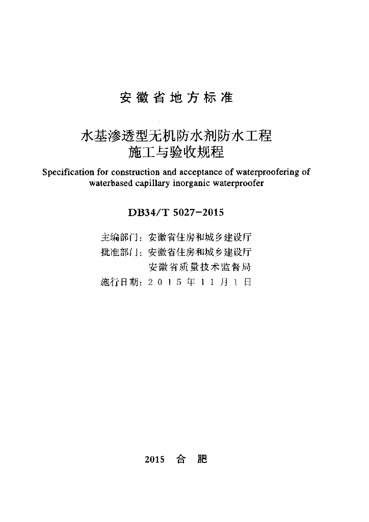DB34/T 5027-2015 水基渗透型无机防水剂防水工程施工与验收规程
