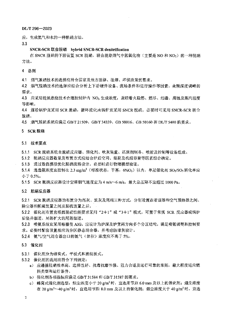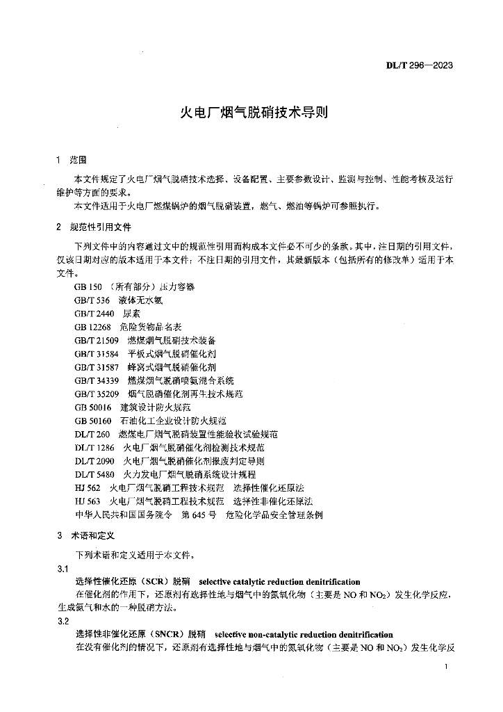 DL/T 296-2023 火电厂烟气脱硝技术导则