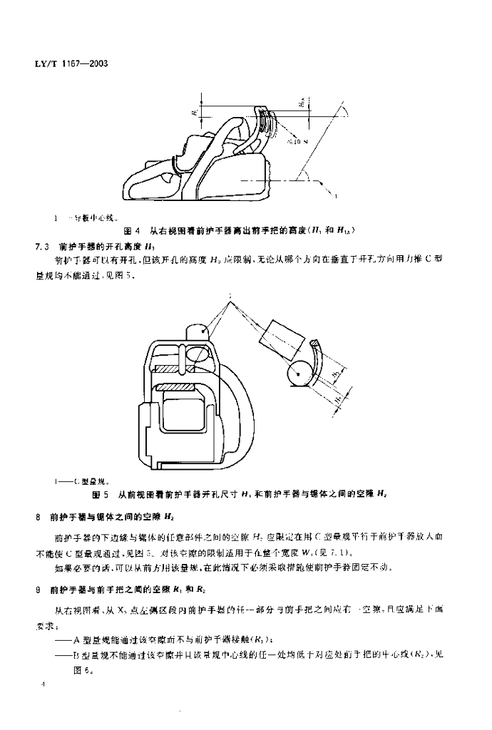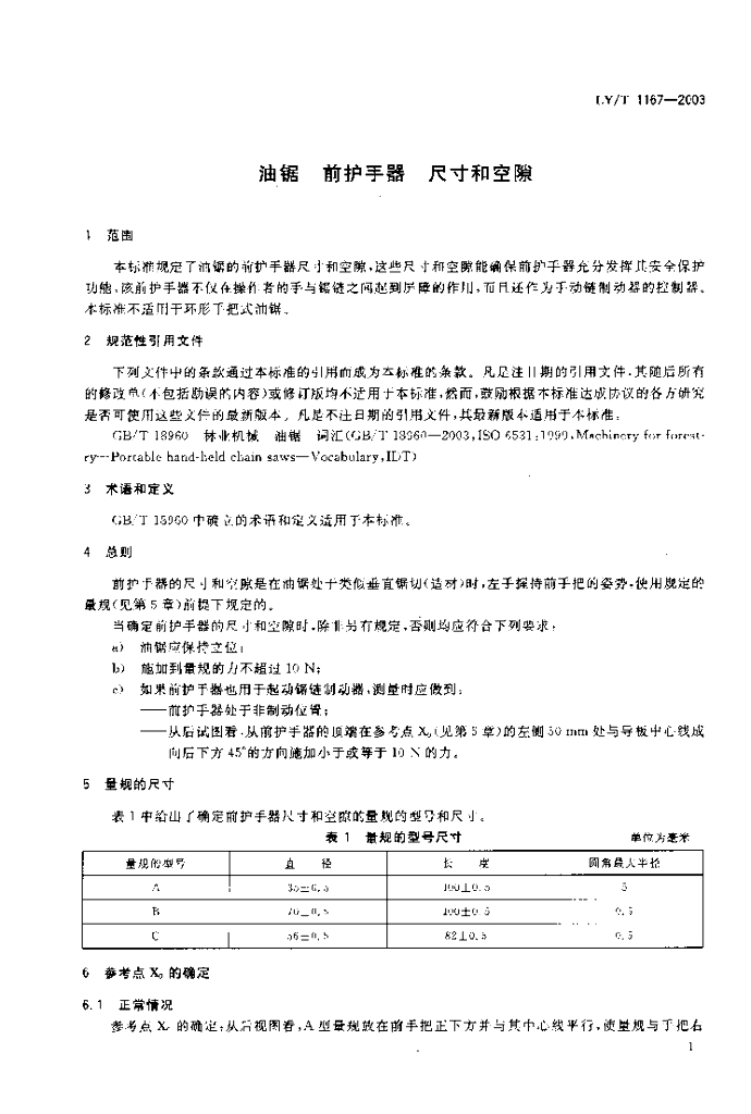 LY/T 1167-2003 油锯 前护手器 尺寸和空隙