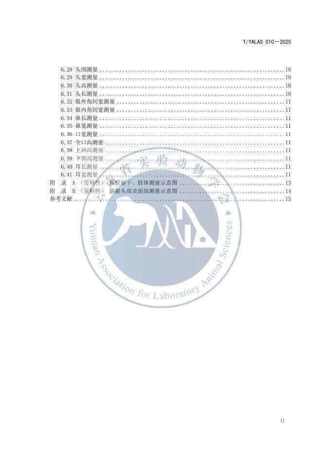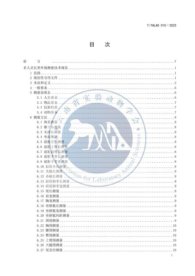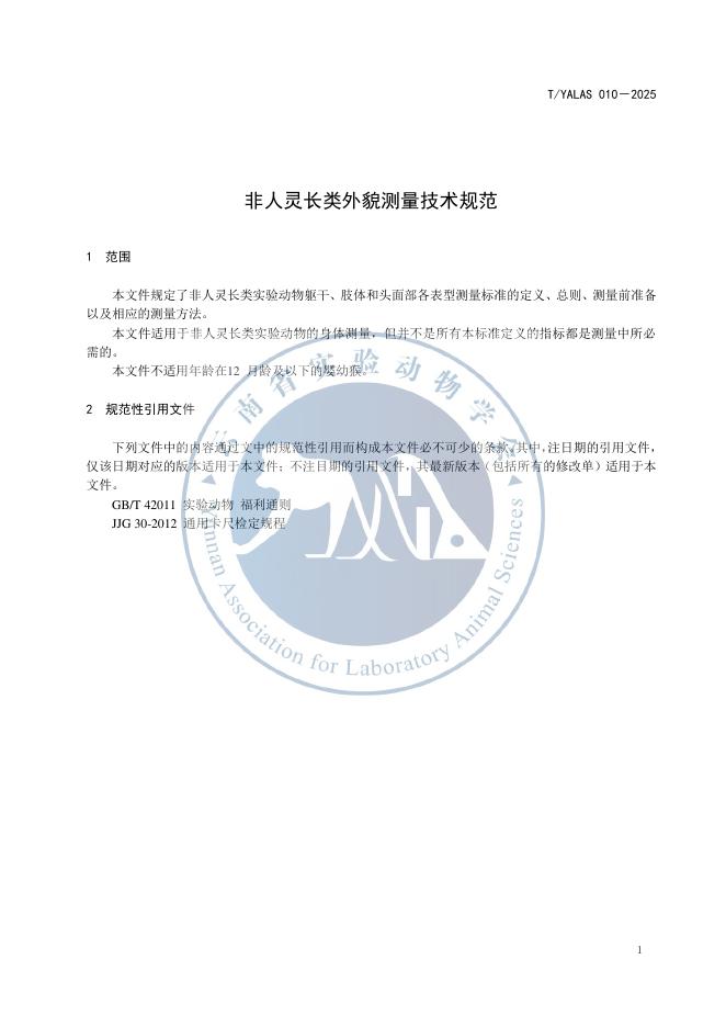 T/YALAS 010-2025 非人灵长类外貌测量技术规范