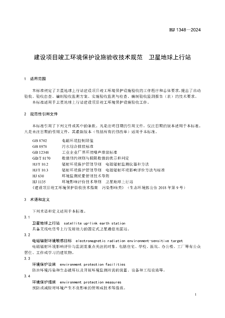 HJ 1348-2024 建设项目竣工环境保护设施验收技术规范 卫星地球上行站