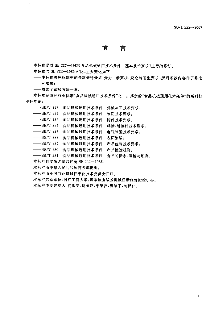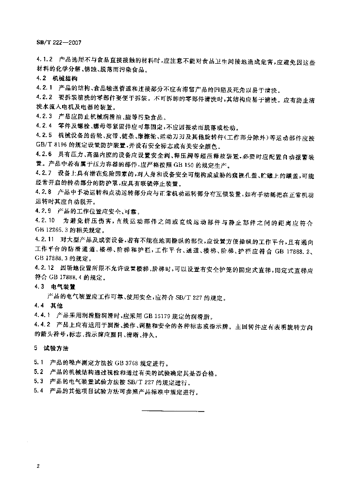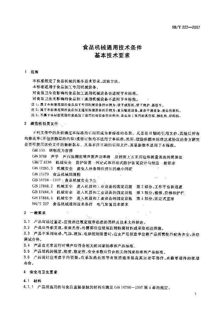 SB/T 222-2007 食品机械通用技术条件 基本技术要求