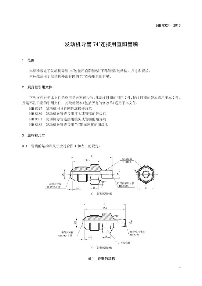 HB 8324-2013(2017) 发动机导管74°连接用直阳管嘴