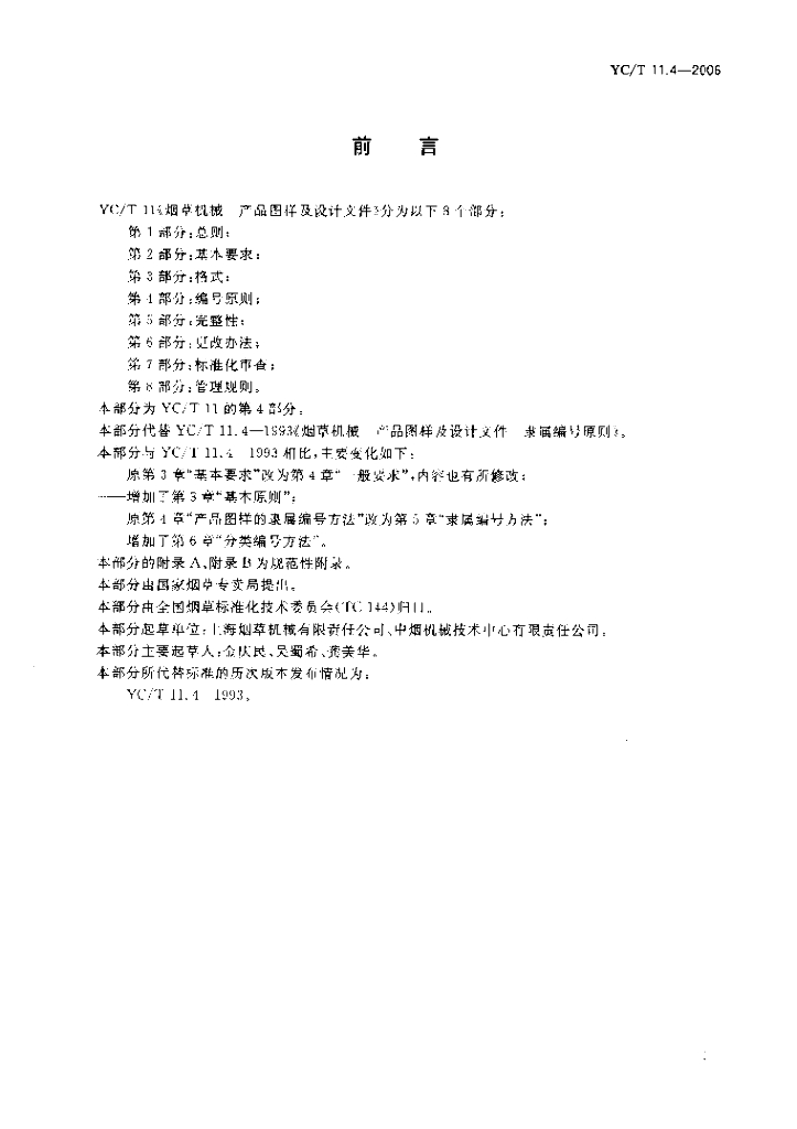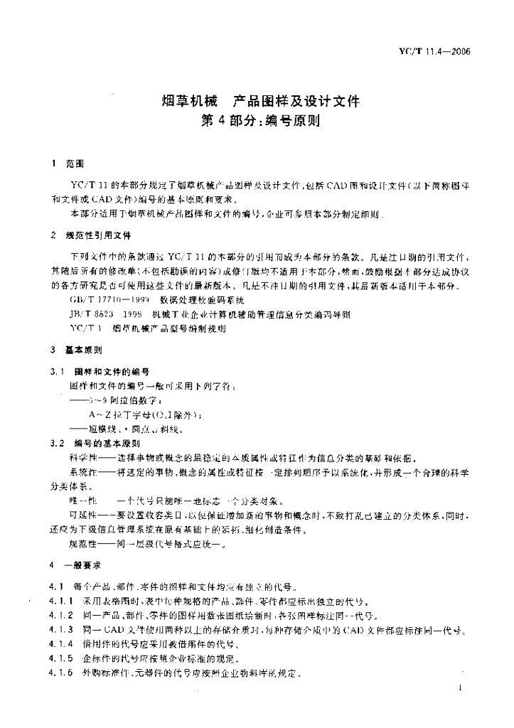 YC/T 11.4-2006 烟草机械 产品图样及设计文件 第4部分编号原则