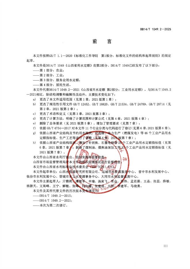 DB14/T 1049.2-2025 山西省用水定额 第2部分:工业