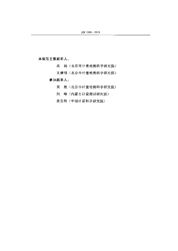 高杨(北京市计量检测科学研究院)、文康明(北京市计量检测科学研究院)、黄艳(北京市计量检测科学研究院)、刘峰(内蒙古计量测试研究院)、黄见明(中国计量科学研究院)