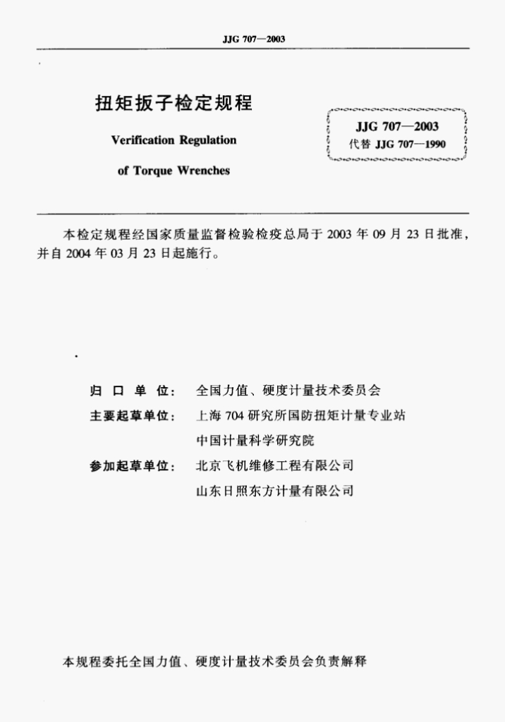 - 代替标准:JJG 707-1990