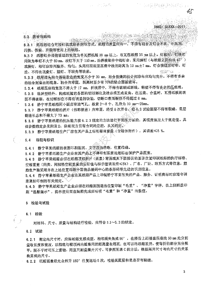 DB62/T 2144-2011 静宁苹果包装用瓦楞纸箱