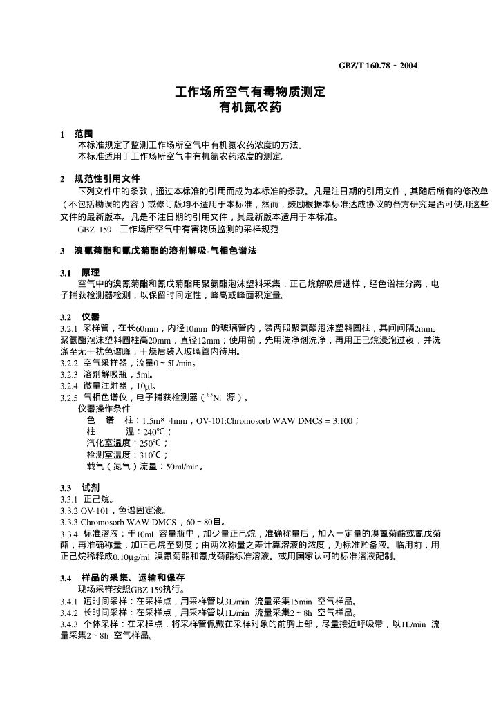 GBZ/T 160.78-2004 工作场所空气有毒物质测定 有机氮农药