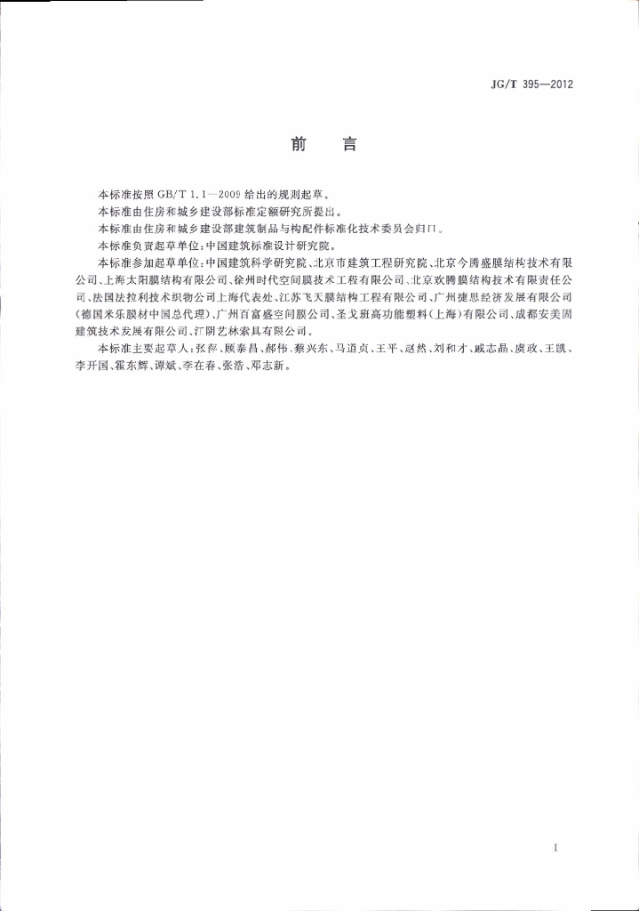 JG/T 395-2012 建筑用膜材料制品