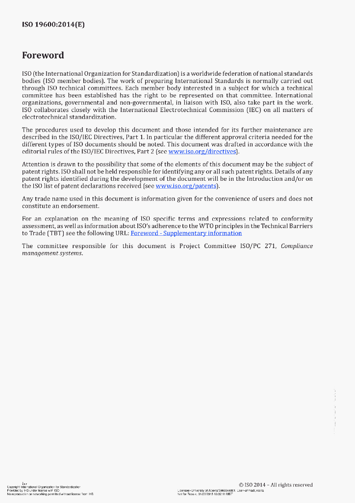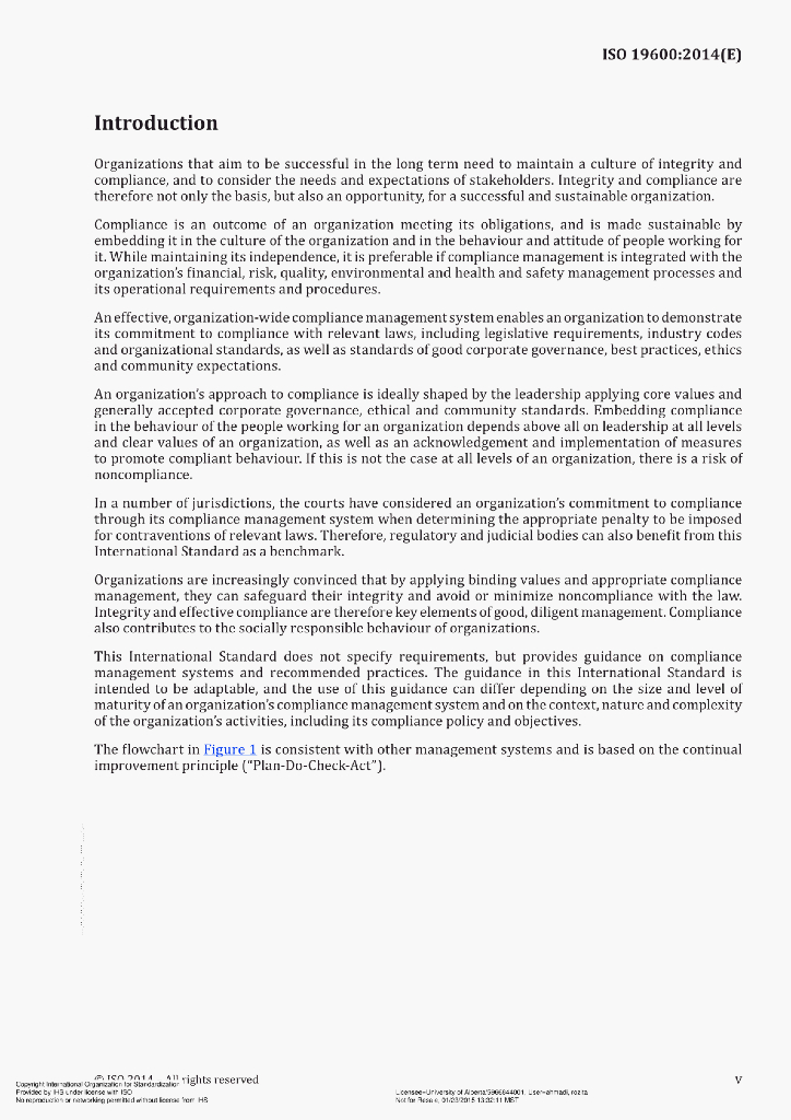 ISO 19600:2014(E) Compliance management systems – Guidelines