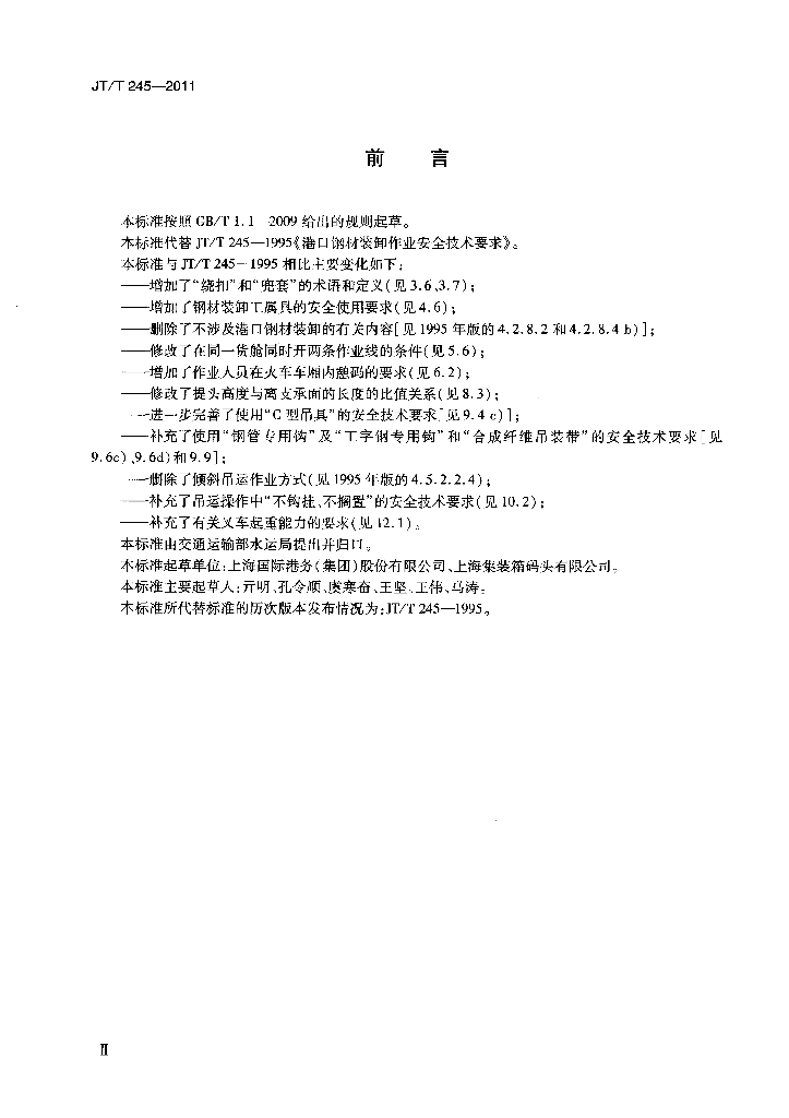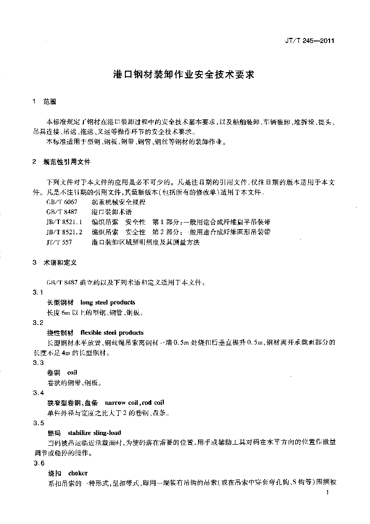 JT/T 245-2011 港口钢材装卸作业安全技术要求