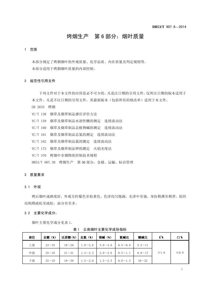 DB53/T 607.6-2014 烤烟生产 第6部分:烟叶质量