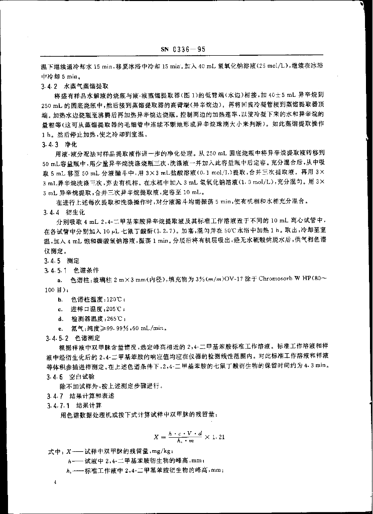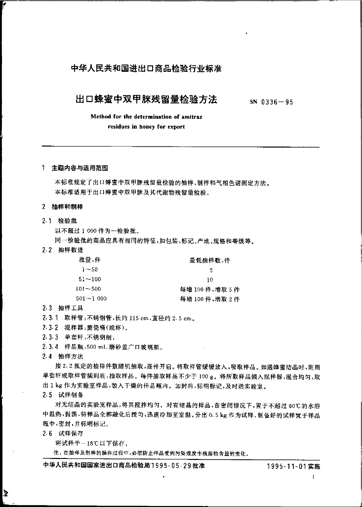 SN 0336-1995 出口蜂蜜中双甲脒残留量检验方法