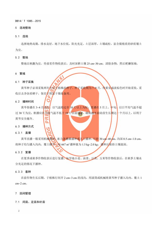 DB14/T 1085-2015 黄芩无公害生产技术规程