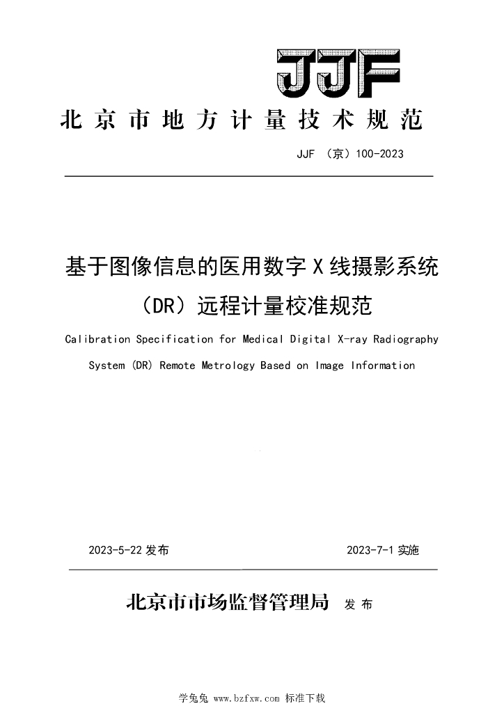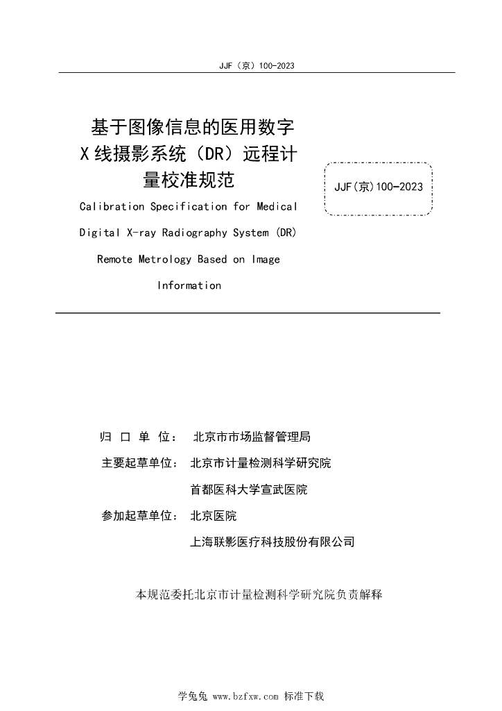 JJF(京)100-2023 基于图像信息的医用数字X线摄影系统(DR)远程计量校准规范