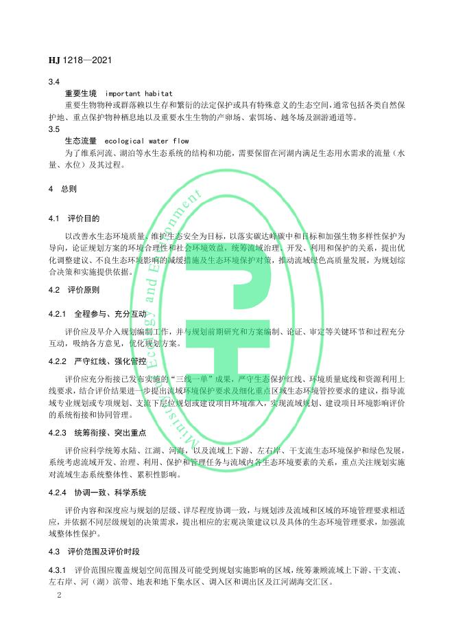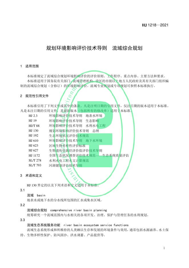 HJ 1218-2021 规划环境影响评价技术导则 流域综合规划