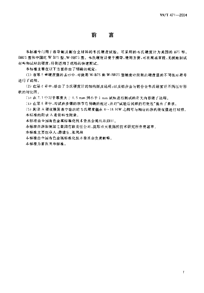YS/T 471-2004 铜及铜合金韦氏硬度试验方法