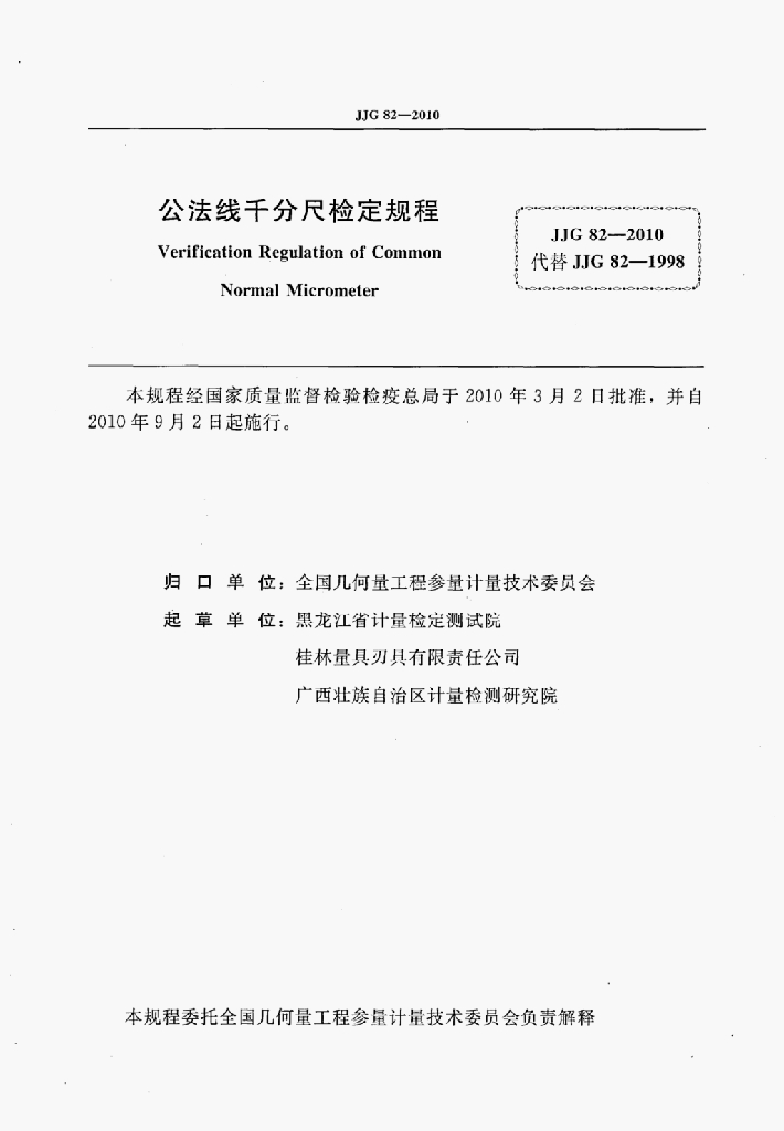 梁玉红(黑龙江省计量检定测试院)、赵伟荣(桂林量具刃具有限责任公司)、全贻智(广西壮族自治区计量检测研究院)、李旭辉(黑龙江省计量检定测试院)、杨琳(黑龙江省计量检定测试院)