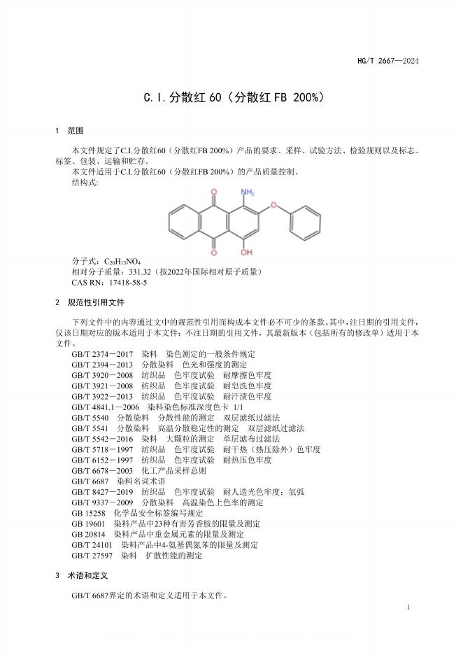 HG/T 2667-2024 C.I.分散红60(分散红FB 200%)