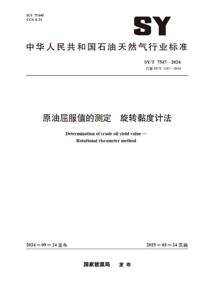 SY/T 7547-2024 原油屈服值的测定 旋转粘度计法