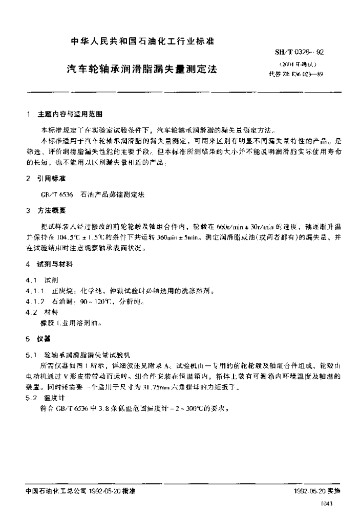SH/T 0326-1992 汽车轮轴承润滑脂漏失量测定法