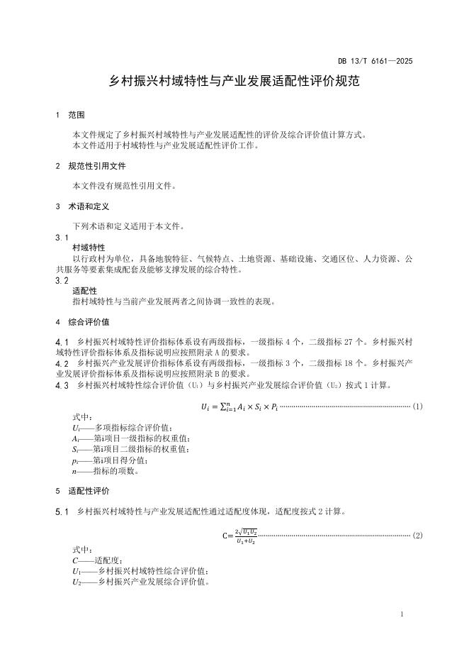 DB13/T 6161-2025 乡村振兴村域特性与产业发展适配性评价规范