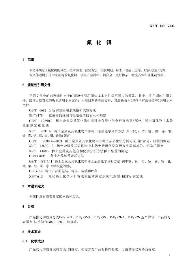 XB/T 240-2023 氟化铒