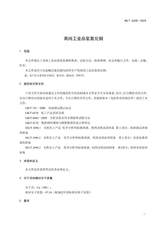 HG/T 6328-2024 高纯工业品 氢氧化铜