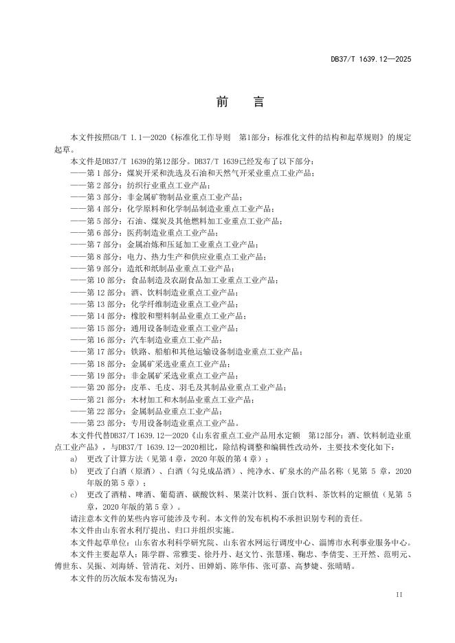 DB37/T 1639.12-2025 重点工业产品用水定额 第12部分:酒、饮料制造业重点工业产品