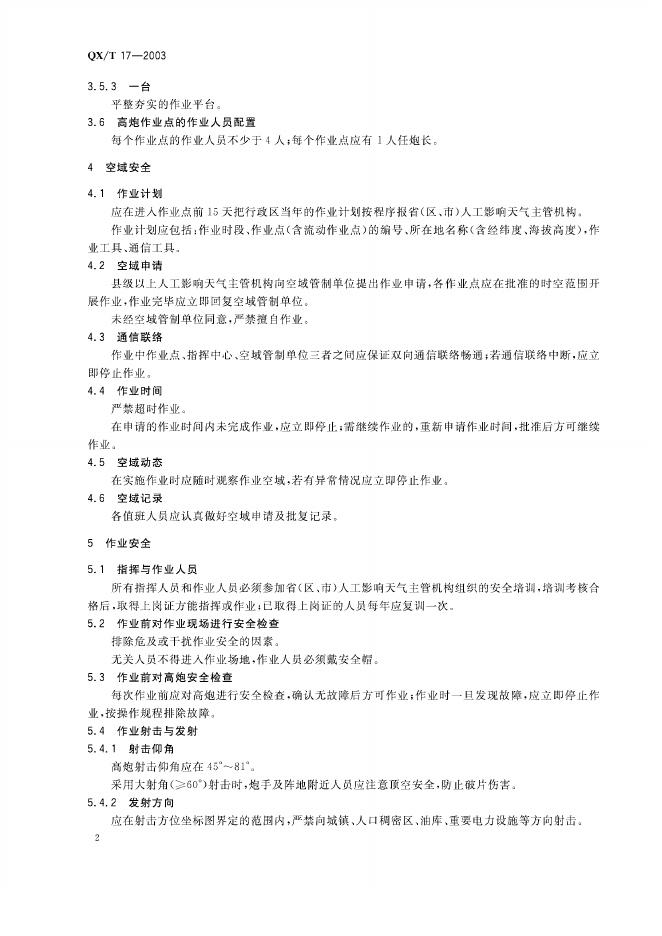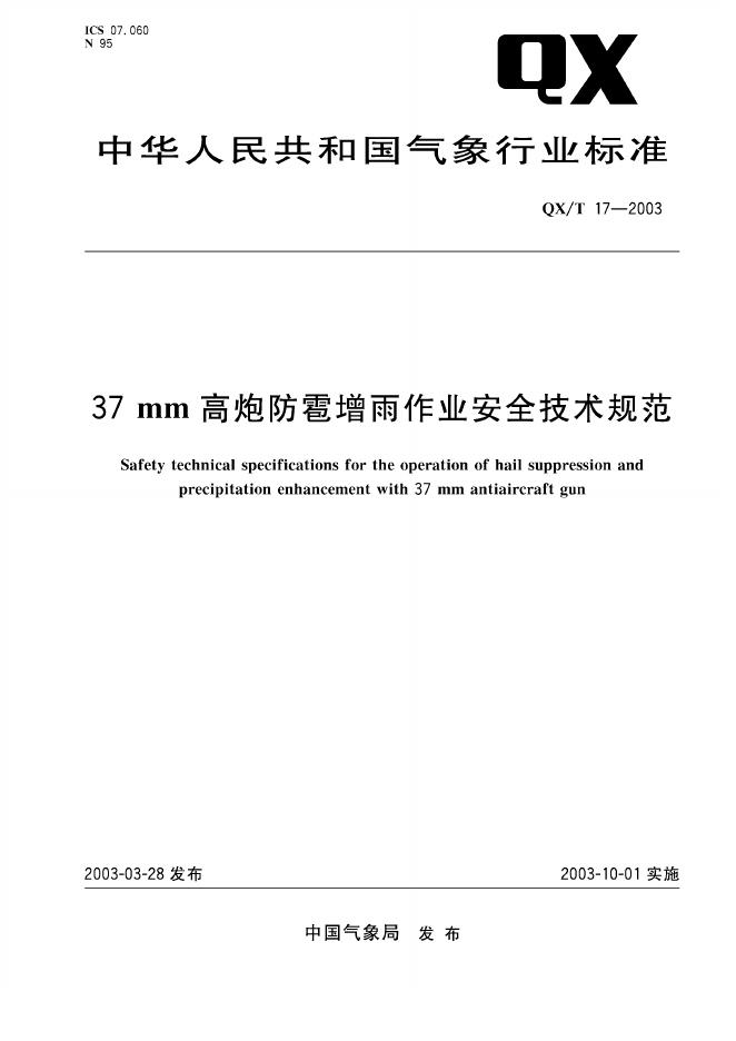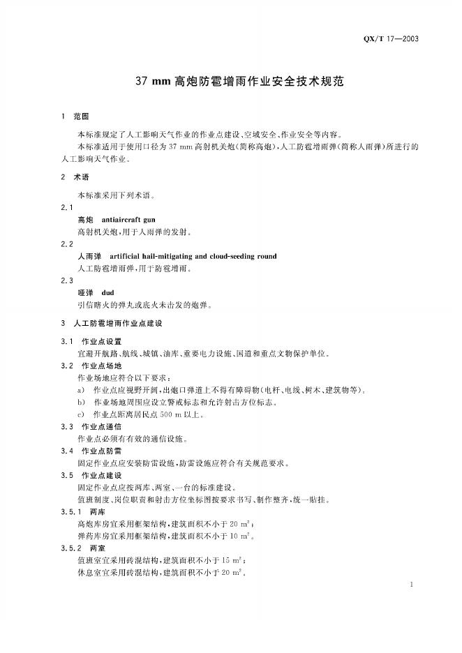 QX/T 17-2003 37毫米高射炮防雹增雨作业安全技术规范
