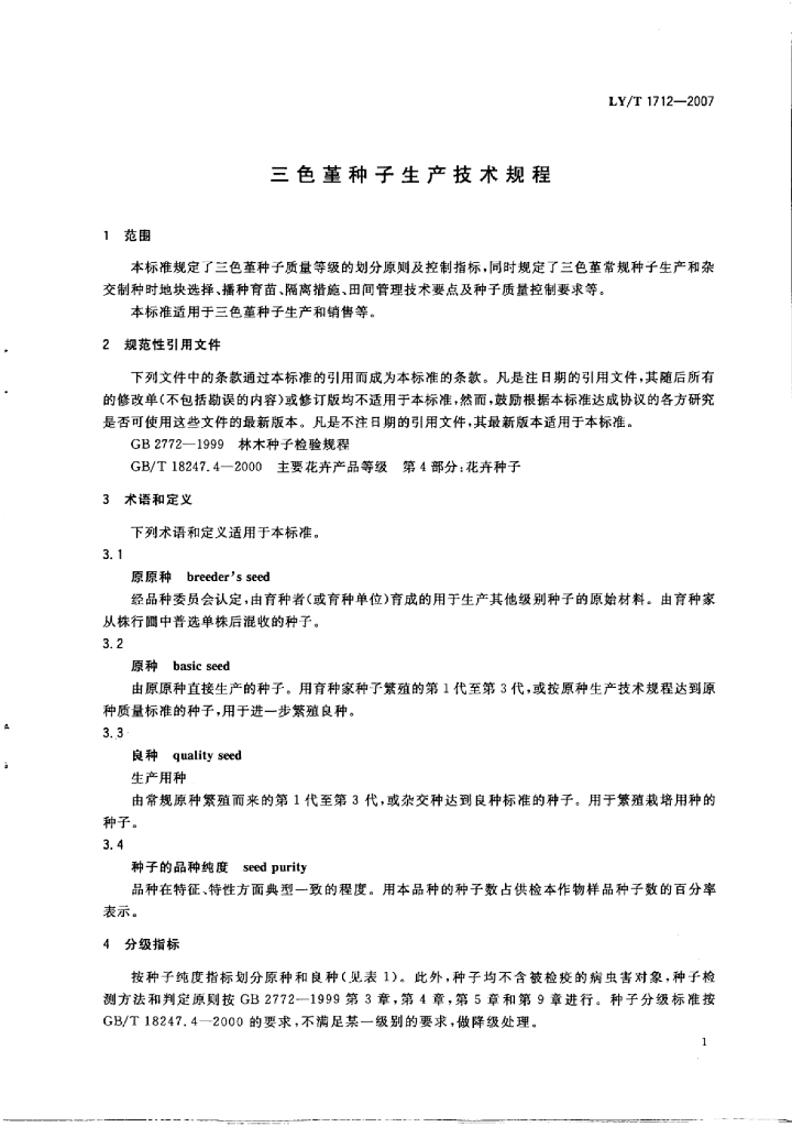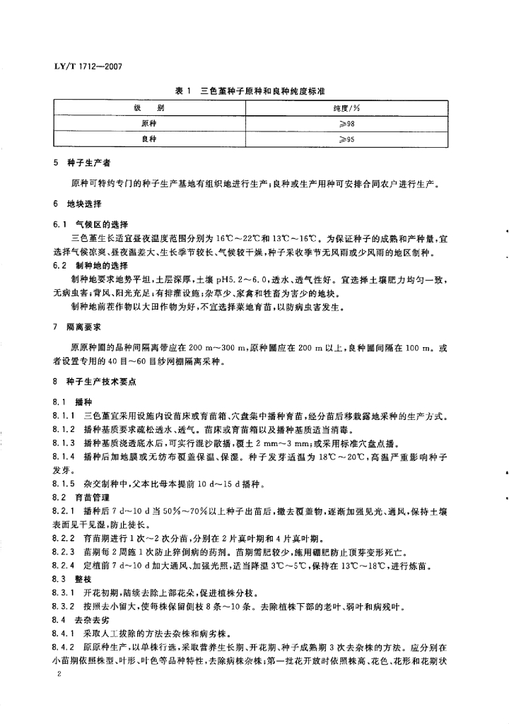 LY/T 1712-2007 三色堇种子生产技术规程