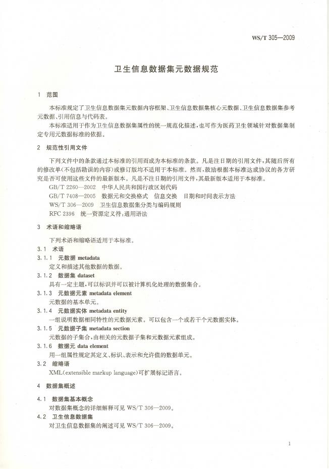WS/T 305-2009 卫生信息数据集元数据规范