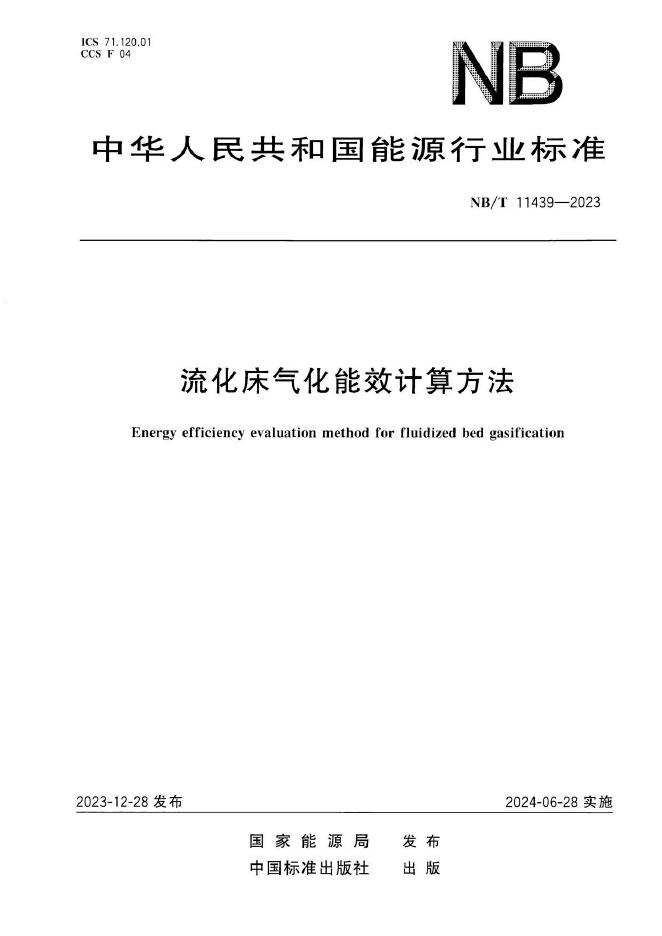 NB/T 11439-2023 流化床气化能效计算方法