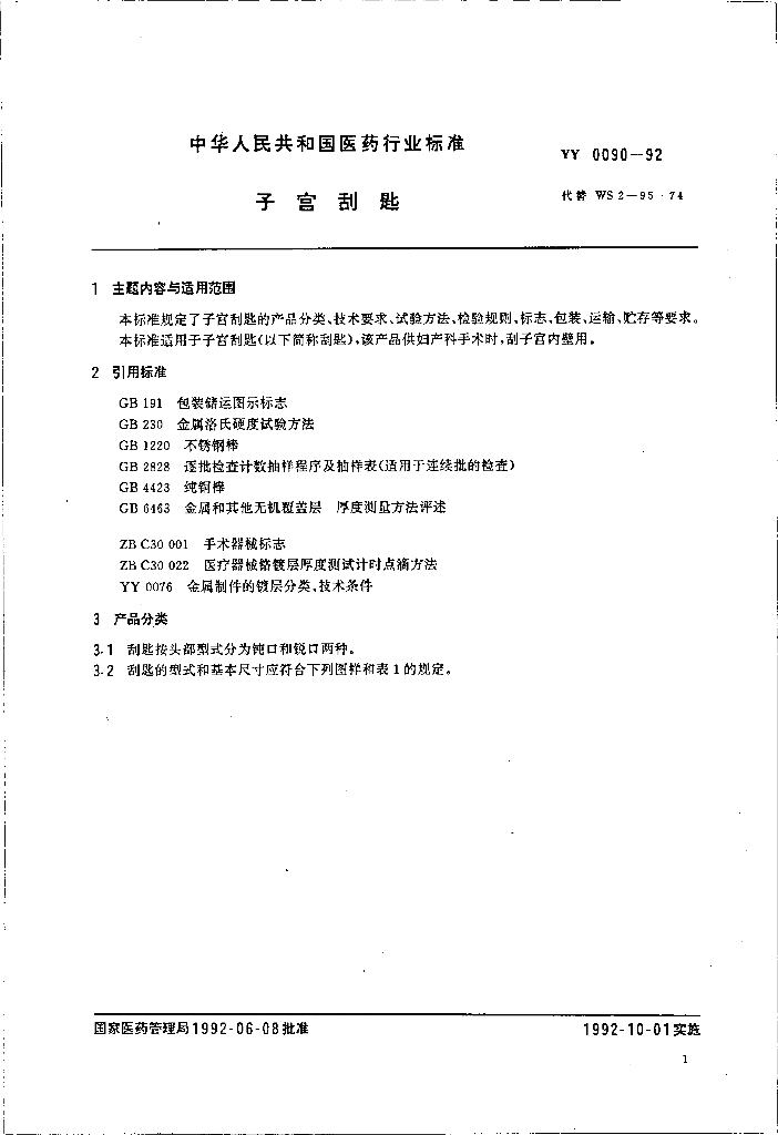 YY 0090-1992 子宫刮匙